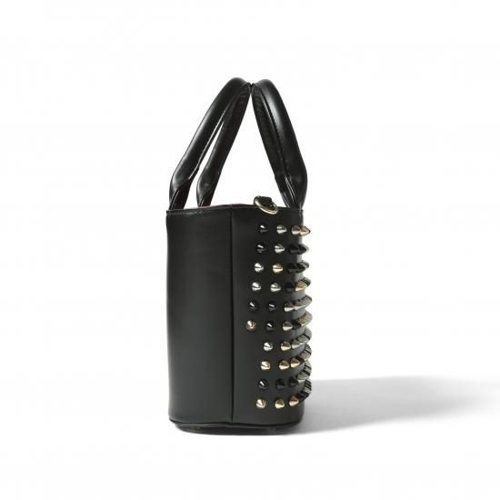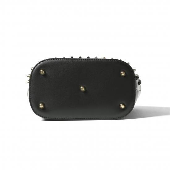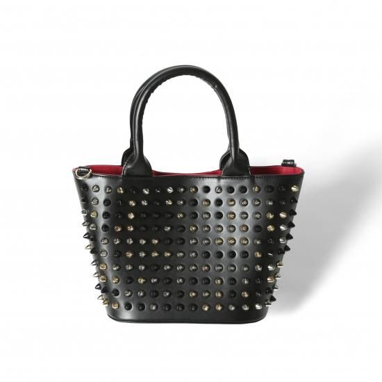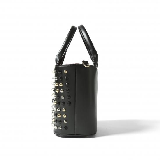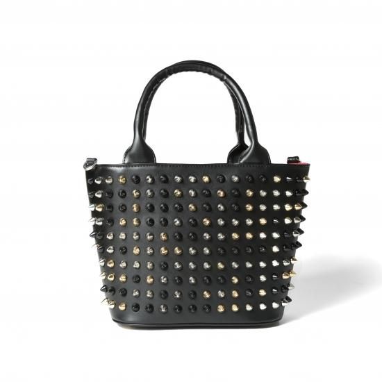 スタッズを前面に散りばめたインパクト大のトートバッグ。